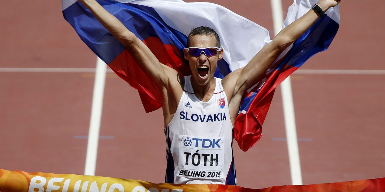 (Titulná foto: Matej Tóth v cieli 50-ky na majstrovstvách sveta v Pekingu 2015, zdroj: atletika.sk)